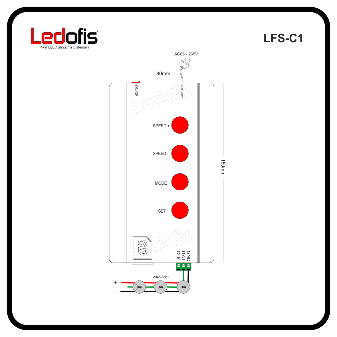C-1000, A+RGB Magic Progranabilir LED Kontrol Cihazı, 2048IC, SD Kartlı, 220volt ile çalışmaktadır