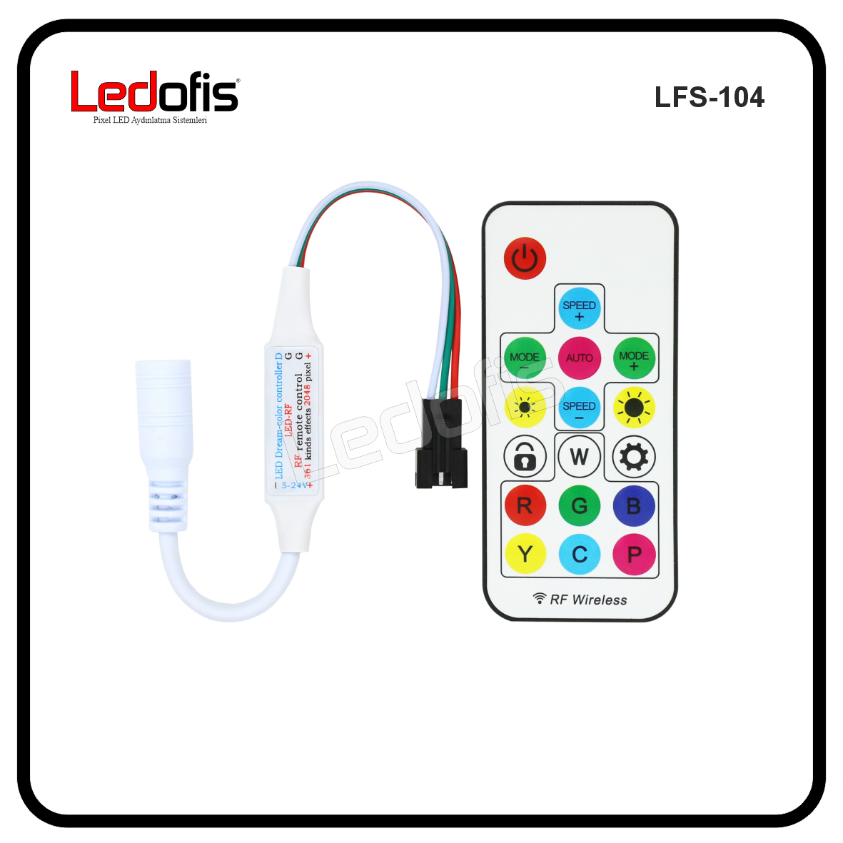 A+RGB Magic LED RF Kumandalı LED kontrol Cihazı, 2048 pixel LED veya 100mt m/60LED Şerit, 140 dahili animasyon 5V – 24V arasında çalışmaktadır