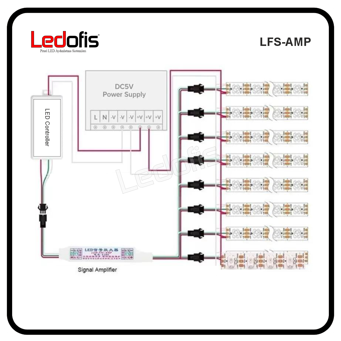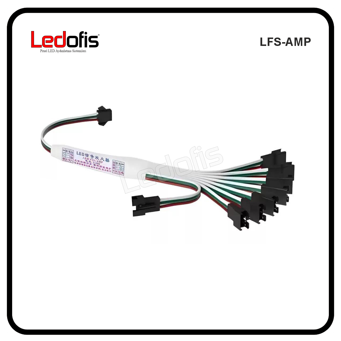 A+RGB TTL AMP Signal Pixel LED kanal çoklayıcı Repeater (AMPLIFIER) 1 giriş 8 çıkışlı, 5V – 24V ile çalışmaktadır. Tüm RGBIC (entegreli) kontrol cihazları ile uyumludur
