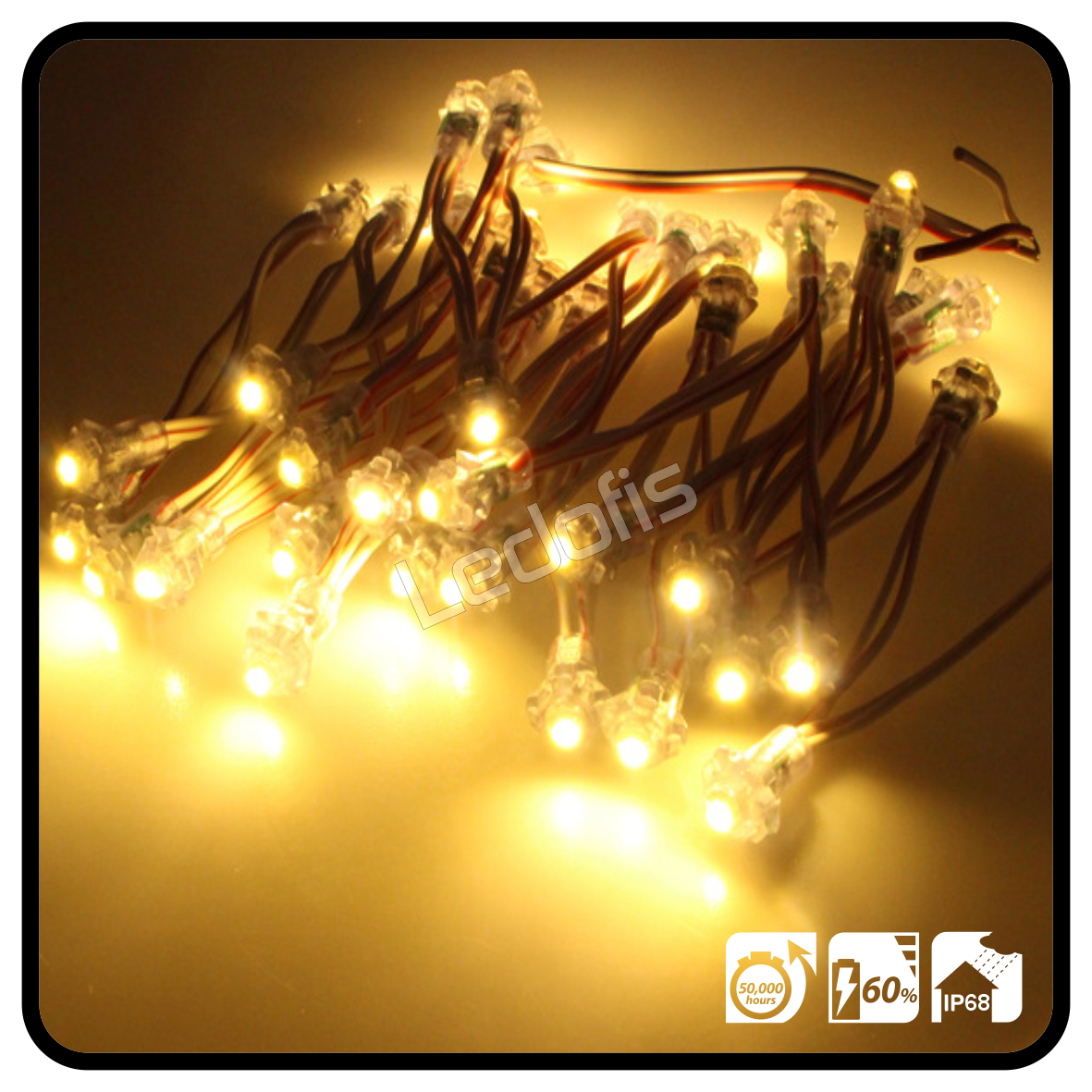 Dizgi LED, 9mm, Gün Işığı, DC 5volt, 20mA, 0.1 watt, Dış Mekan IP68 (Bağ 50 adet)