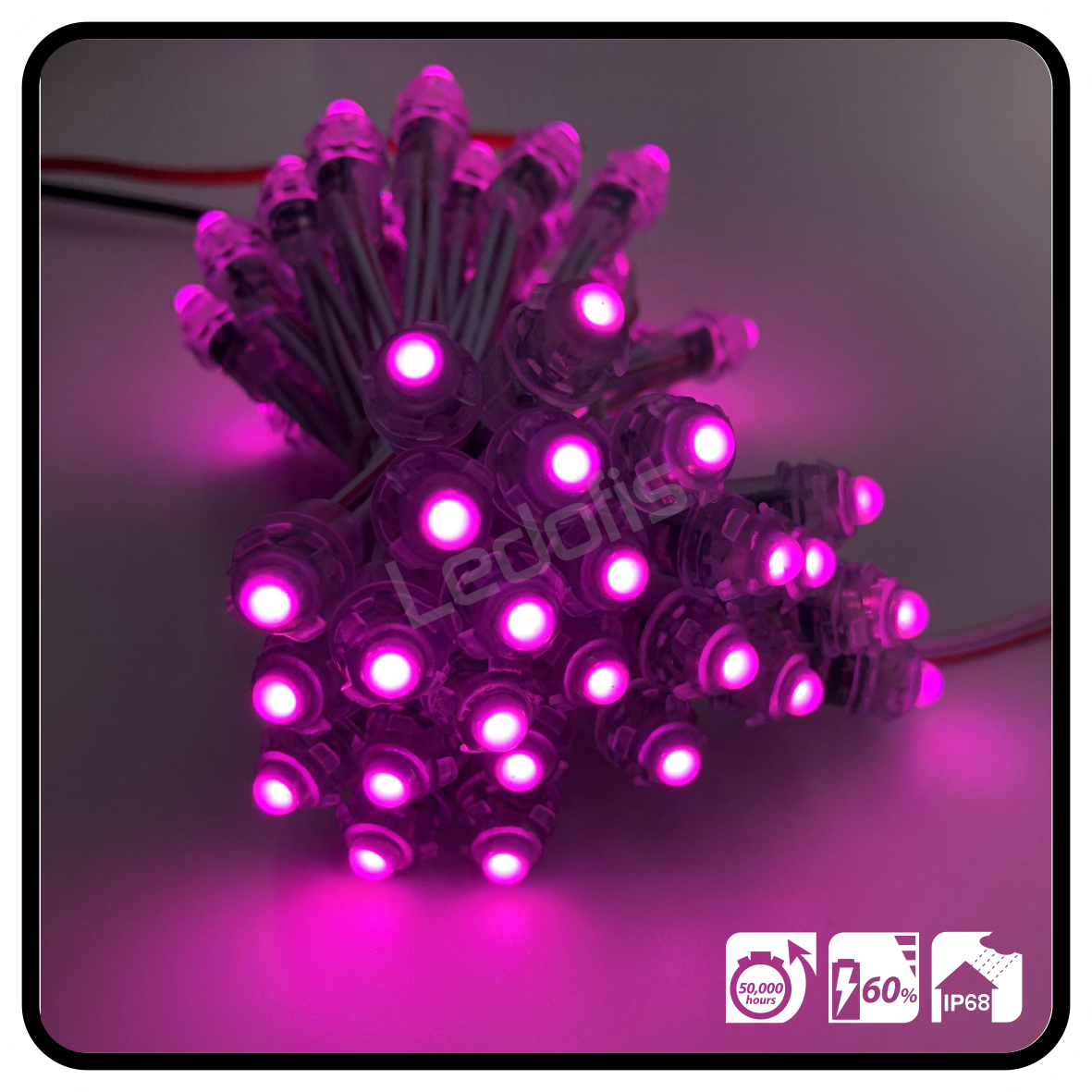 Dizgi LED, 9mm, Pembe, DC 5volt, 20mA, 0.1 watt, Dış Mekan IP68 (Bağ 50 adet)