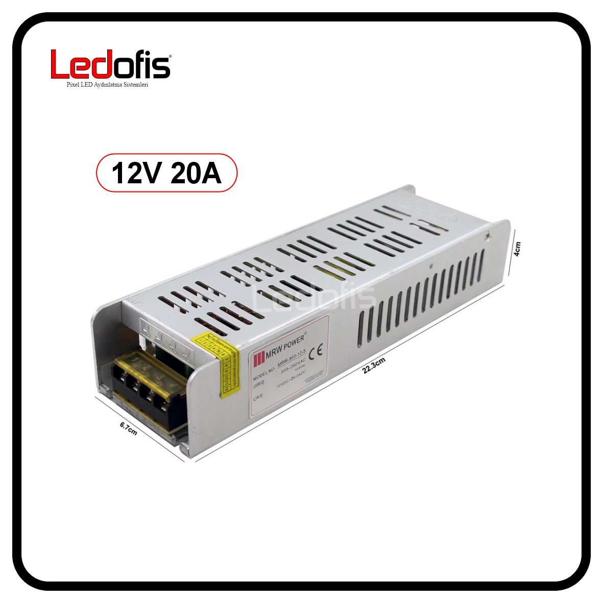 AC-DC 12V 20A 240W Güç Kaynağı (Adaptör)