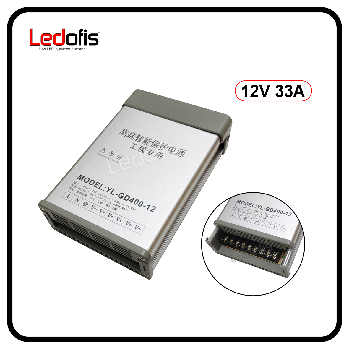 AC-DC 12V 33A 400W Güç Kaynağı (Adaptör) Yağmur korumalı