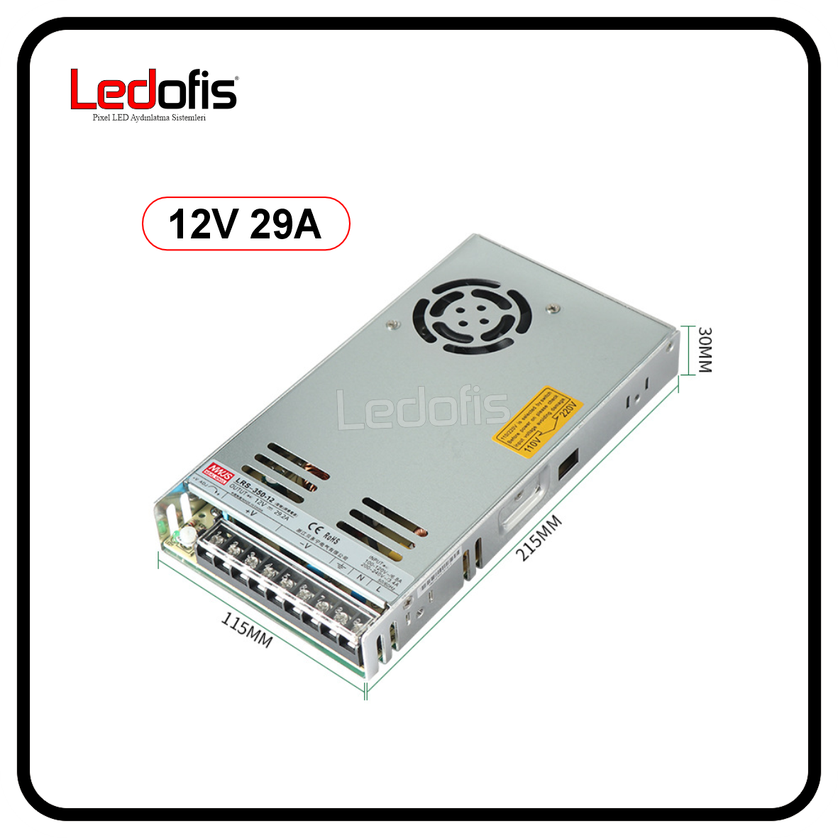 AC-DC 12V 29A 350W Güç Kaynağı (Adaptör) Slim Kasa